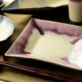 繊細な釉薬の流れで飾られた使いやすい大きさの角皿です。